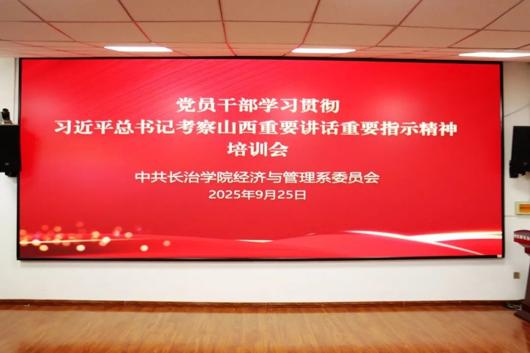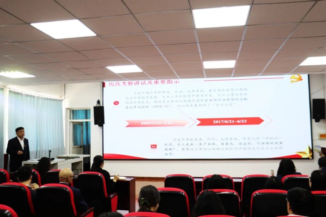 9月25日下午,经济与管理系党委在南校区办公楼2层导游模拟实训室举办了“学习贯彻习近平总书记考察山西重要讲话重要指示精神”专题讲座,全体师生党员参加。