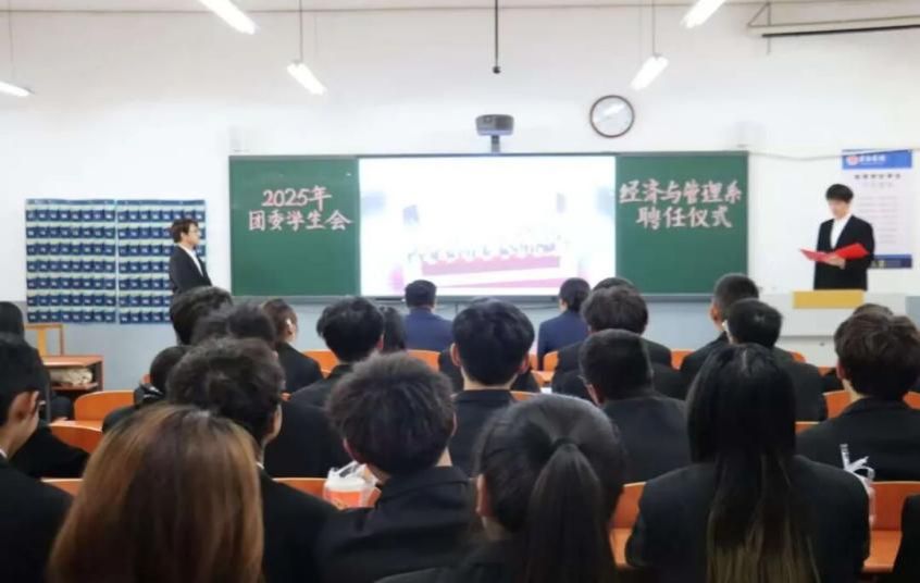 为明确新一届学生组织的使命担当,凝聚学生干部的服务共识,推动我系团学工作有序衔接与创新发展,10月20日,经济与管理系在西002南教室隆重举行2025年团委学生会聘任仪式。系党委副书记白凤麟、系团委副书记李亮出席,团委学生会全体成员共同参加。