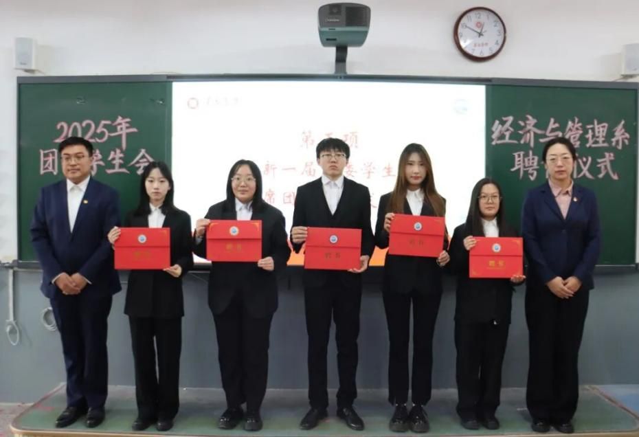 系团委副书记李亮宣读了《关于经济与管理系新一届团委学生会学生干部聘任的决定》。宣读完毕后,李亮老师与白凤麟副书记共同为新任主席团、部长团及干事成员颁发聘书。现场掌声阵阵,气氛热烈庄重。