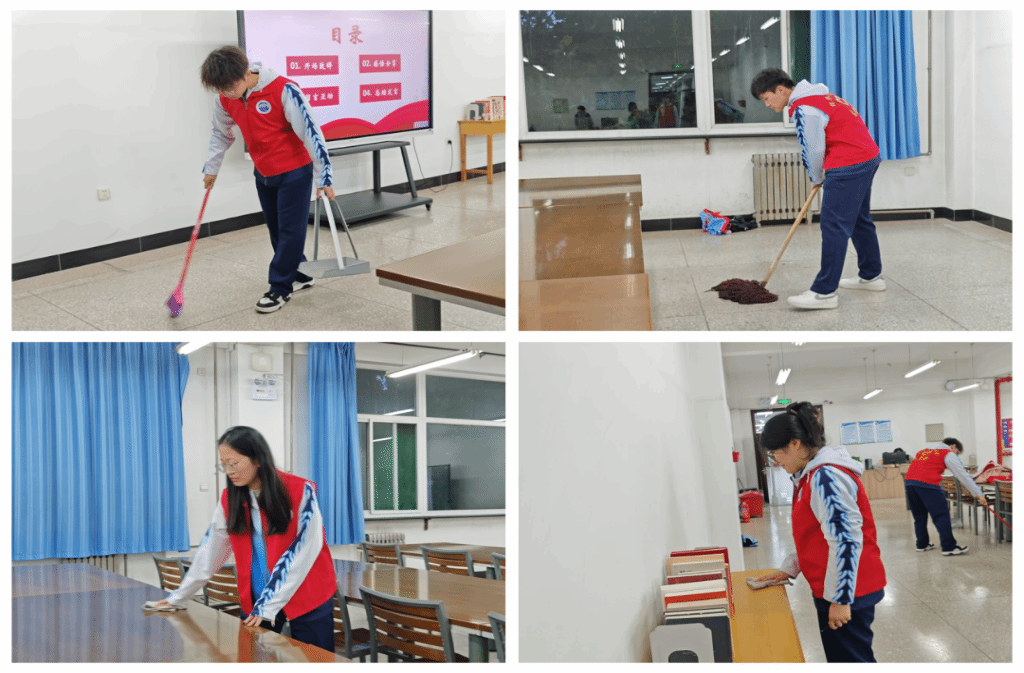 在“书香守护者计划”图书馆志愿服务中,团委组织部同学分工协作、默契配合。志愿者们手持清洁工具,细致清理书架间隙与地面角落,不放过任何卫生死角。尽管需要反复弯腰、踮脚,大家始终以耐心与专注投入工作,为广大师生营造了更加整洁舒适的阅读环境。活动不仅优化了阅览空间,更让同学们在劳动中深化了服务意识,体会到“把小事做实、把实事做好”的责任与意义。