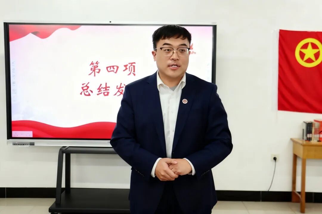 活动最后,李亮老师以“铭记抗战历史,传承红色基因,勇担青年使命”为主题作总结讲话。他紧密结合纪念中国人民抗日战争暨世界反法西斯战争胜利80周年的重大历史节点,通过详实的历史细节与自身感悟,讲述了侵华日军的残酷罪行和南京大屠杀幸存者的真实境遇,语重心长地指出:“忘记历史,就是对先辈的不公,我们决不允许历史的真相被时间淹没。”他进一步强调,站在新的历史起点,广大团员青年要深刻认识抗战精神的时代意义,坚定理想信念,传承红色血脉;要珍惜九三阅兵等国家盛典所激发的民族自豪,主动通过红色故事宣讲、口述党史实践等形式,让历史在青年一代心中扎根、传承、发光。