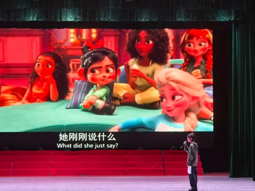 本次参赛作品选自《无敌破坏王2:大闹互联网》中迪士尼公主集体亮相的经典片段,以幽默风趣的台词、鲜明的角色个性与紧凑的节奏成为影片亮点。参赛队员通过精准的语音语调和富有层次的演绎,生动再现了公主们的性格转变与互动趣味,既保留原作魅力,又融入了团队的创意诠释,为现场观众带来了一场精彩的视听体验。