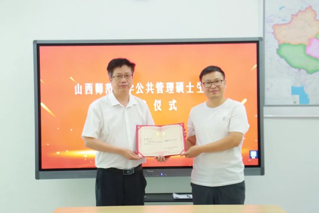 在学术答辩的热烈余韵中,公共管理硕士生导师受聘仪式庄重举行。山西师范大学MPA研究中心副主任岳强、长治学院研究生教学部主任任嘉红、长治学院图书馆馆长秦楼月、长治学院经济与管理系副主任(主持工作)任杲出席活动,新晋受聘的山西师范大学MPA研究生硕士生导师悉数到场。仪式由岳强副主任主持,他宣读受聘导师名单后,对导师们提出潜心育人、创新教学、深化科研等要求,并逐一颁发聘书。这份承载着信任与责任的聘书,不仅是对导师专业能力的认可,更标志着长治学院在研究生教育师资队伍建设上迈出重要一步。