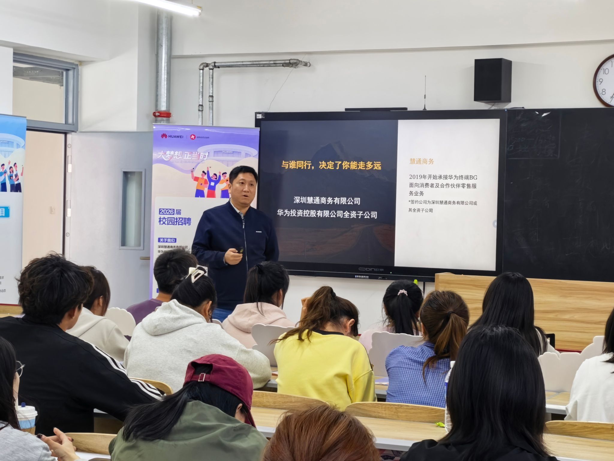 4月18日,深圳慧通专场招聘会顺利举行,本次招聘会共有二十余名学生报名参加。企业招聘团队详细介绍了公司现状、组织架构、工作岗位、薪资待遇、晋升渠道、福利保障等信息,针对学生关注的工作地点、晋升途径、岗位需求量等问题,逐一耐心解答。活动现场,深圳慧通公司还特意带来多款华为品牌平板产品,组织在场学生沉浸式体验华为自研“天生会画”App。工作人员现场演示软件操作流程,细致讲解功能亮点,指导学生亲手实操,让学生在亲身体验中感受软件便捷易用的操作模式、强大的创作功能,直观了解企业前沿技术实力与产品研发理念,近距离感受企业文化与科技魅力,加深了对企业业务布局与发展优势的认知。